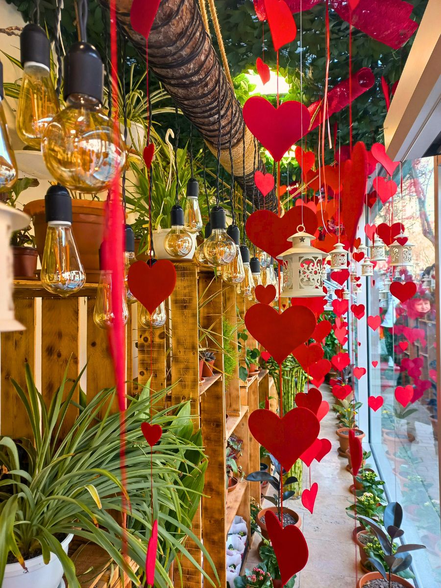 Valentijnsdag is een geweldige tijd om je winkel te vullen met rode, roze en witte decoraties, hartjes, cupido’s en andere accessoires. Je plaatselijke hobbywinkel of feestartikelenwinkel heeft genoeg materialen – en ideeën. Je kunt beginnen met het maken van opvallende etalages met je Valentijnsarrangementen.